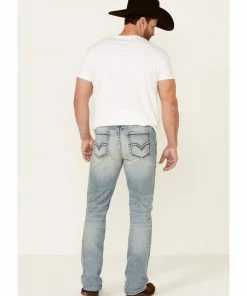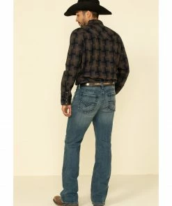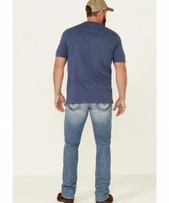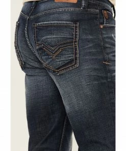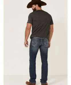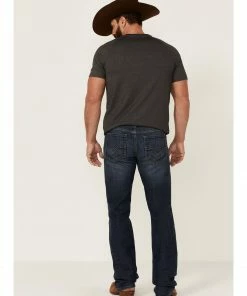 Moonshine Spirit Men’s Corral Dust Medium Dark Wash Stretch Slim Straight Jeans Dark Medium Wash