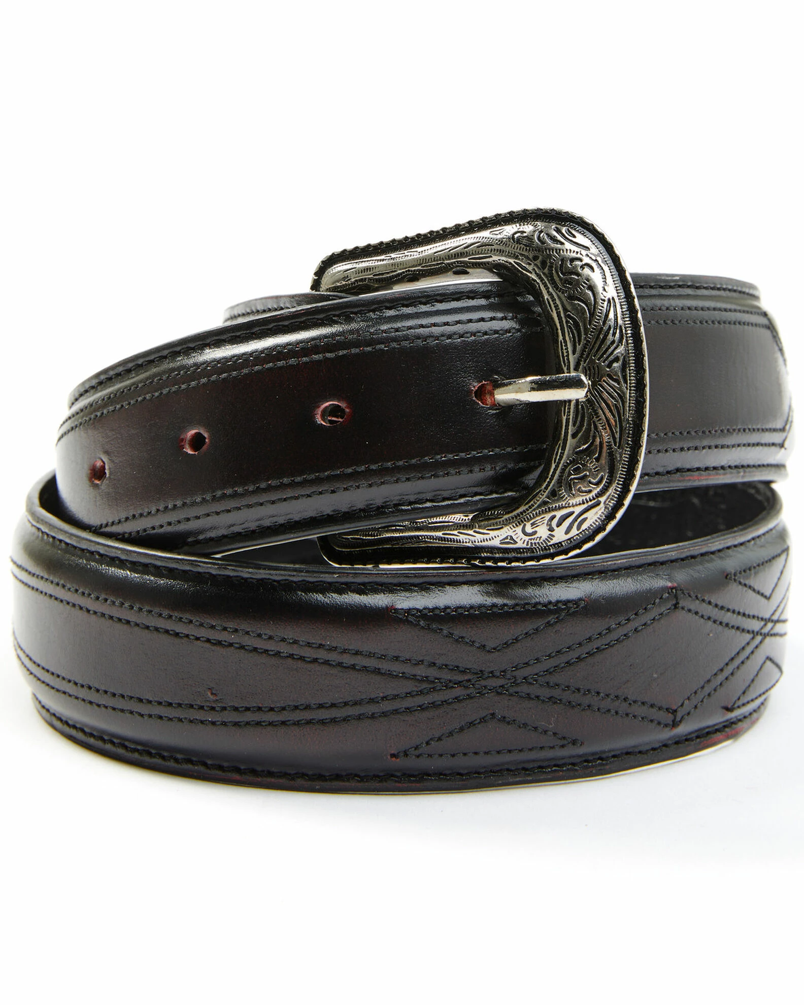 Be the first to review “Moonshine Spirit Men’s Black Cherry Stitched Pattern Leather Belt” Cancel reply