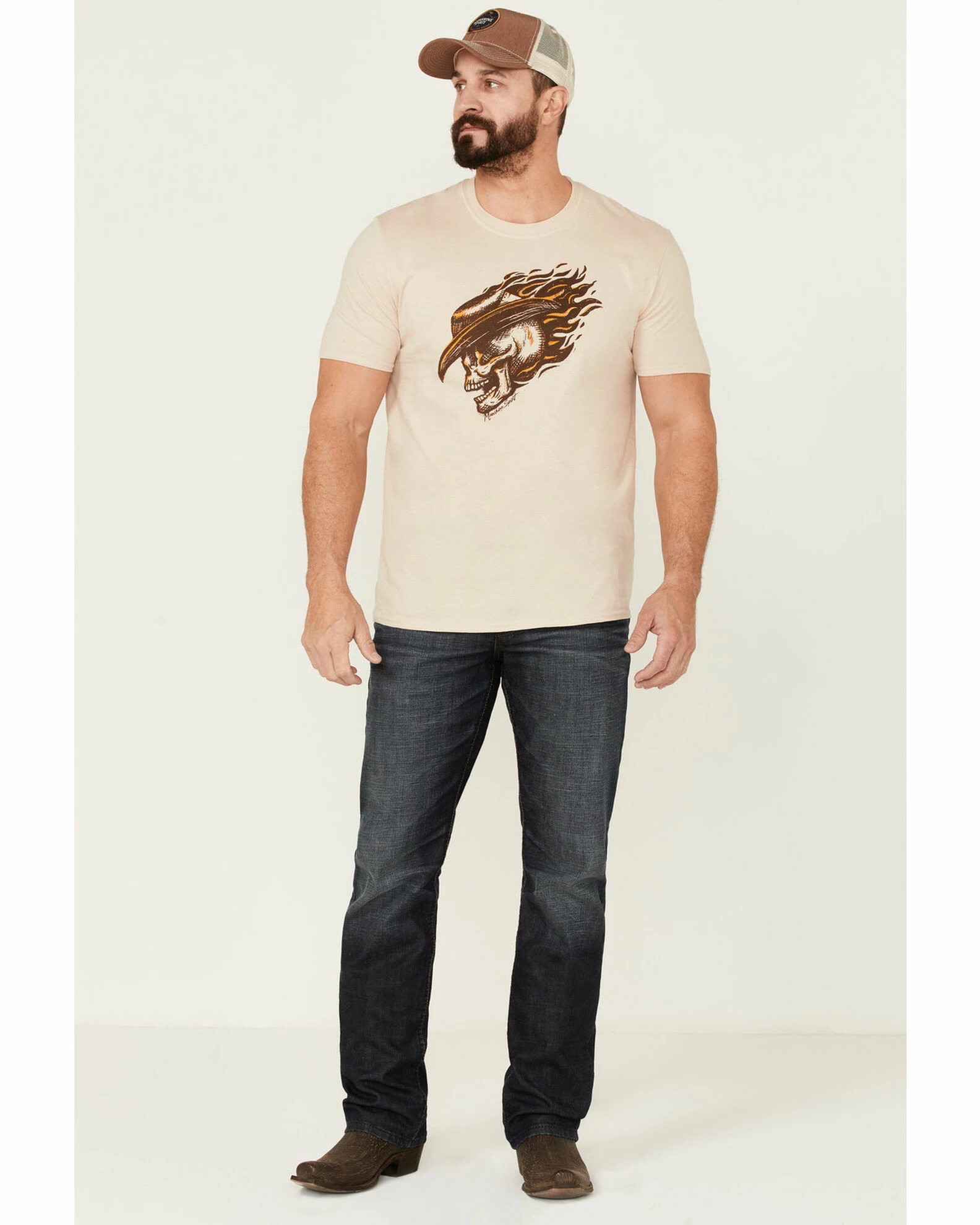 - Flame cowboy skull graphic on front
