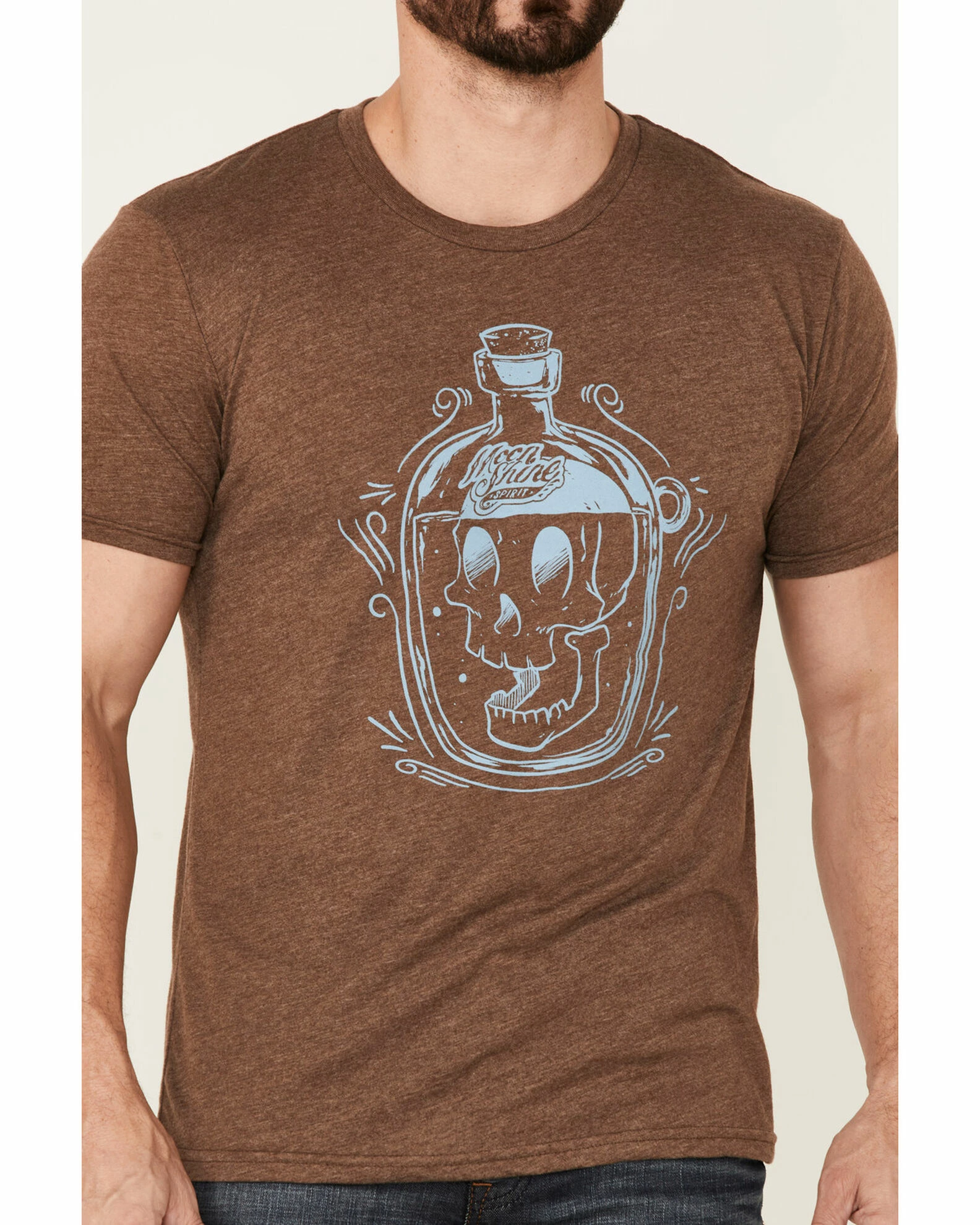 - “Moonshine Spirit” with jug head skull graphic on center front