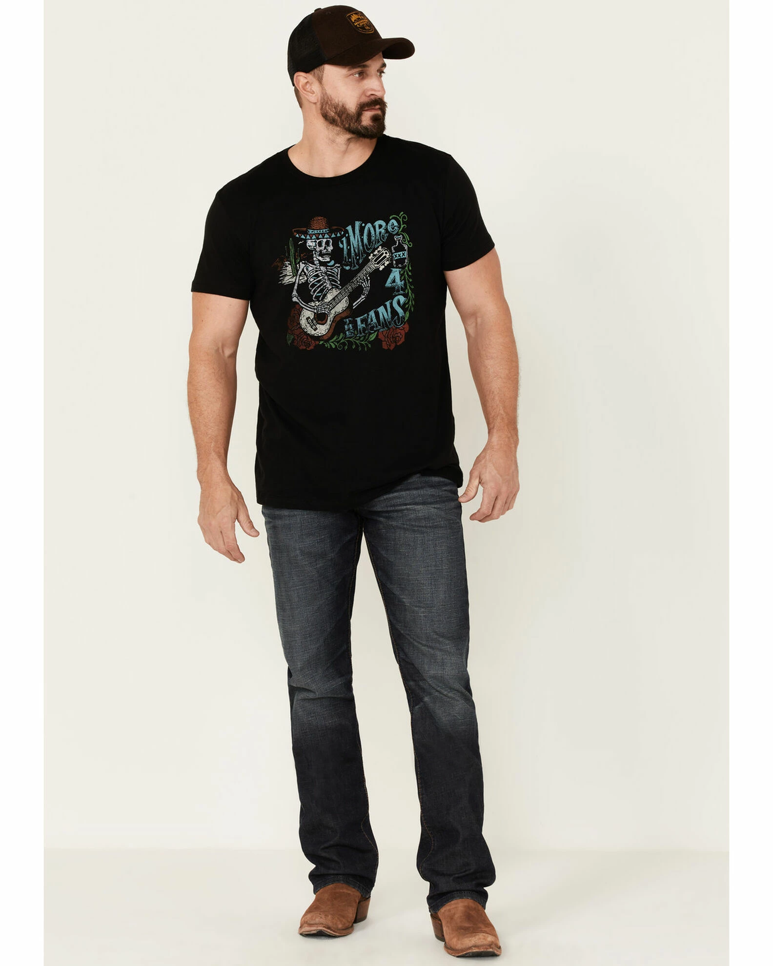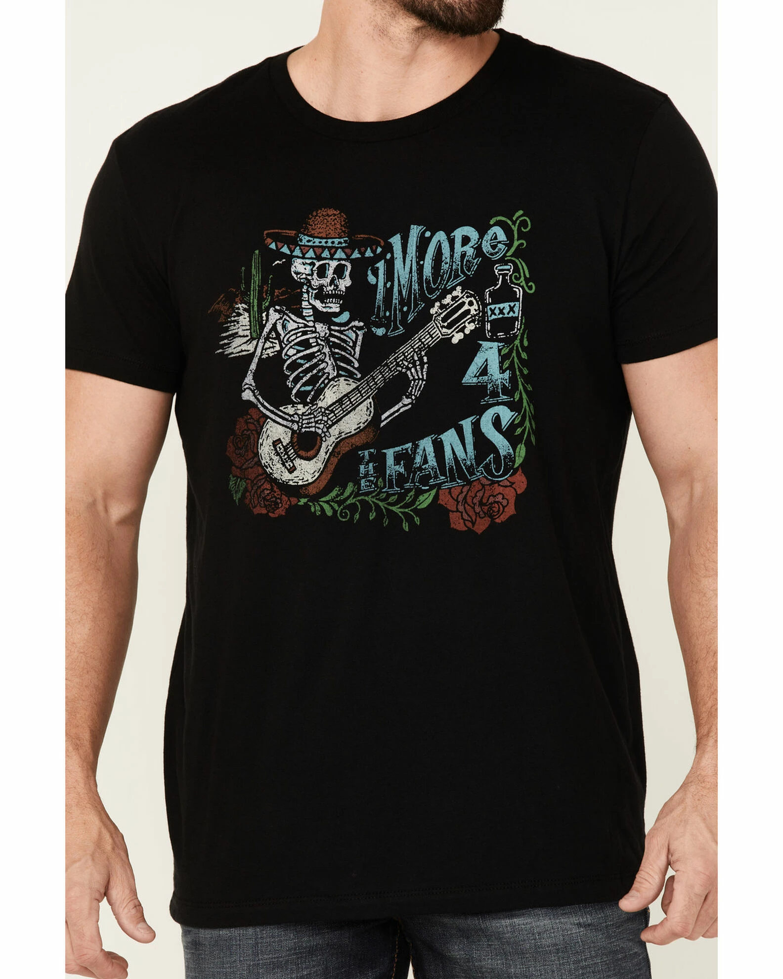 - “More 4 For The Fans” with guitar playing cowboy skull, bottle, cactus, & wrap around rose graphic on front