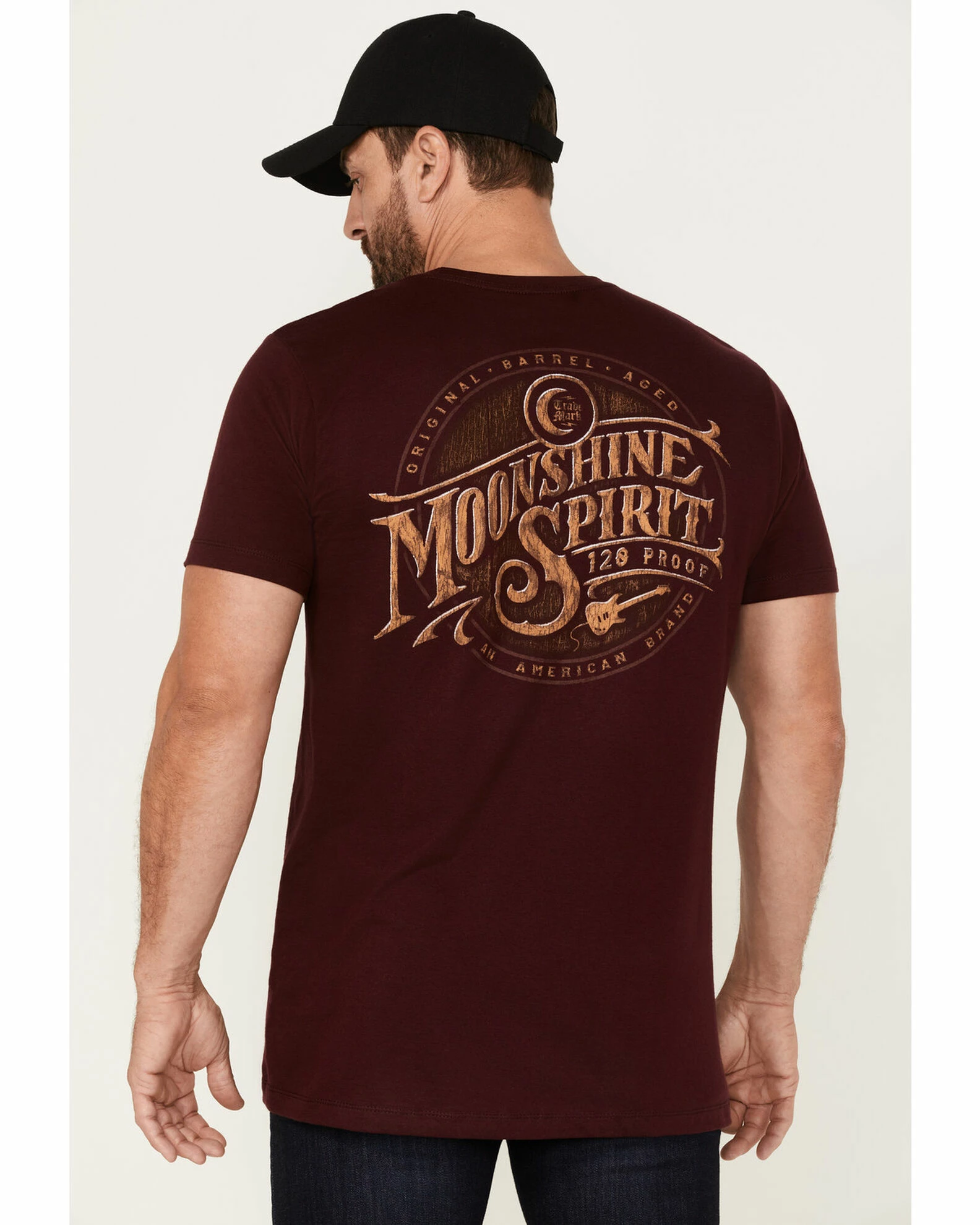 - “Moonshine Spirit 120 Proof” oak barrel graphic on back