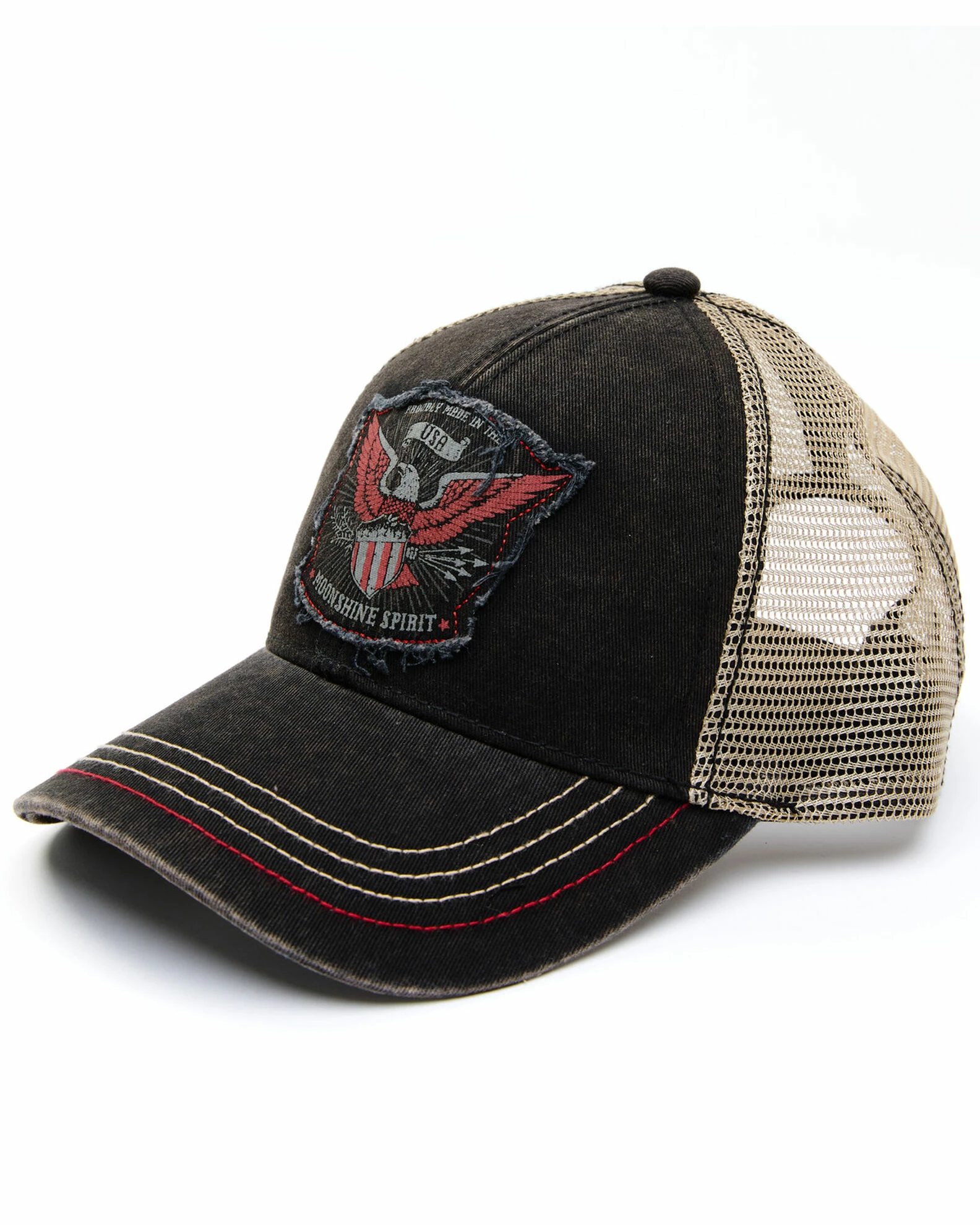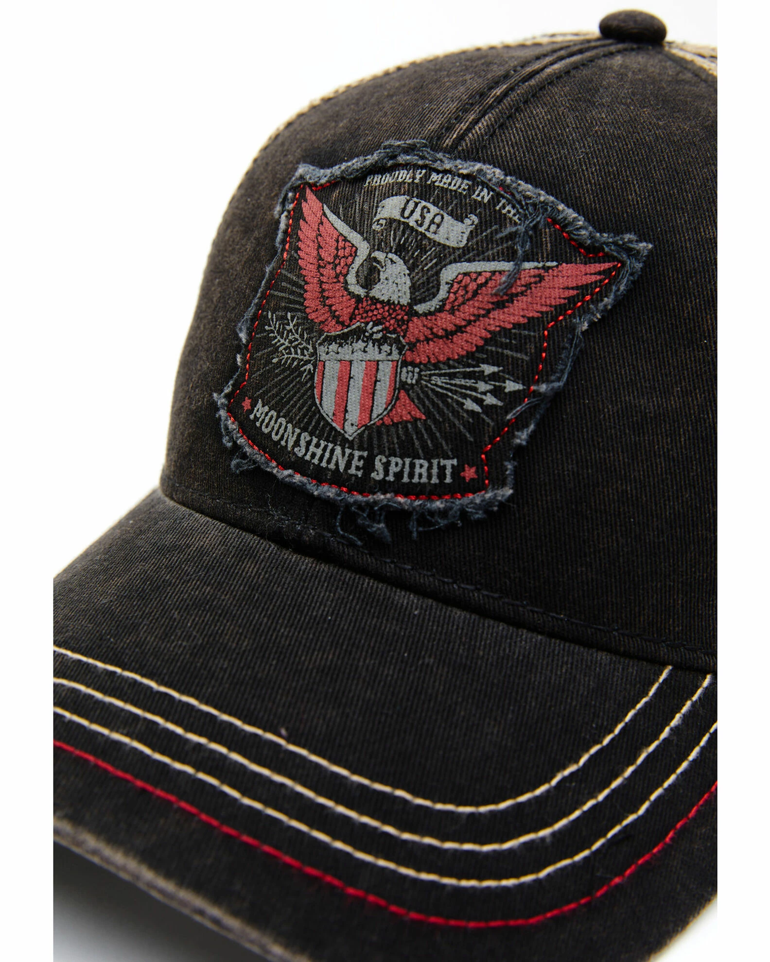 - “Moonshine Spirit Made In The USA” with embroidered eagle & shield on front