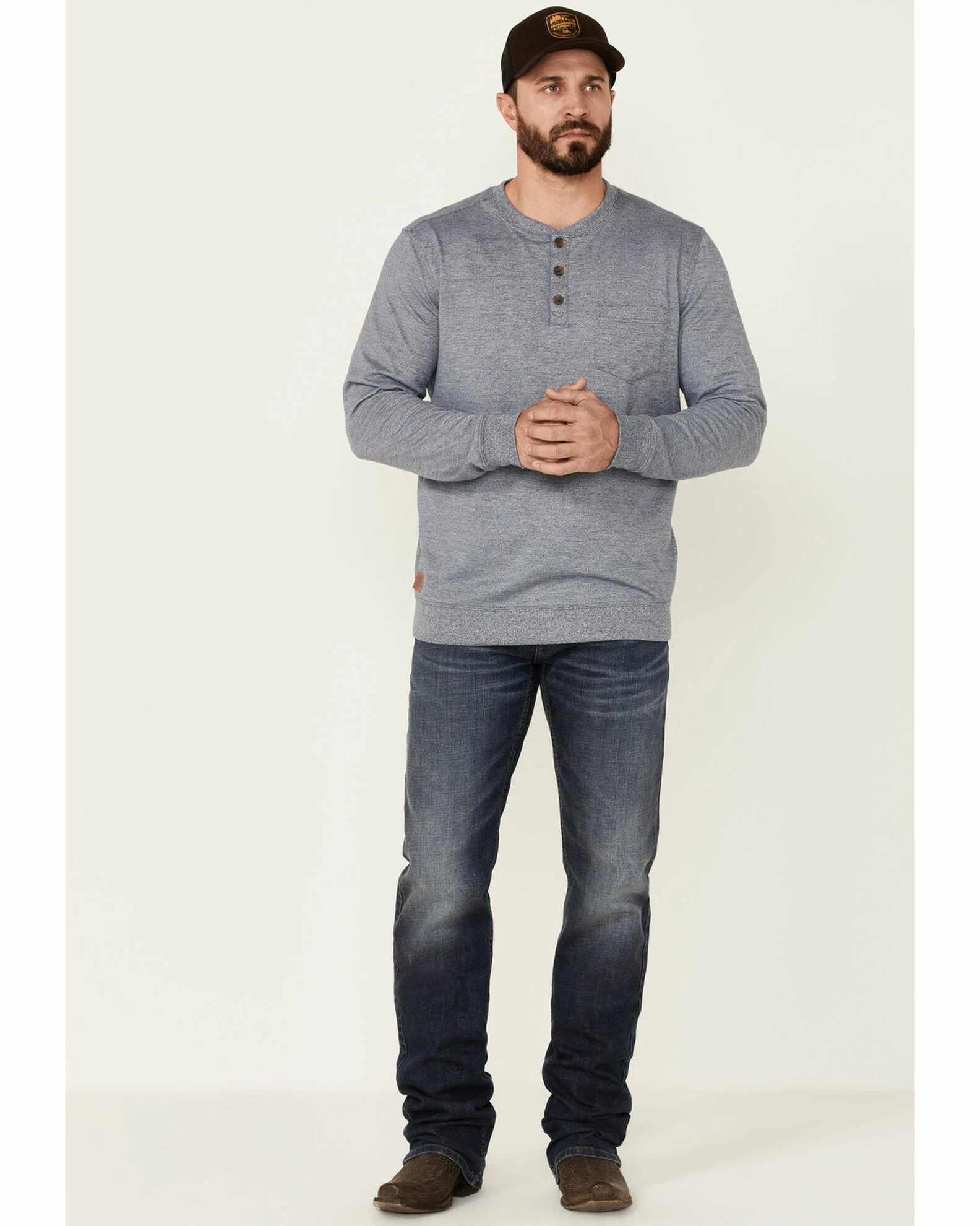 - Three button front henley collar