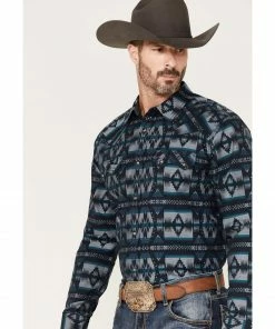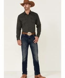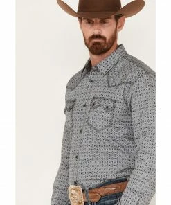 Moonshine Spirit Moonshine Spriit Men’s Cross Hatch Geo Print Long Sleeve Snap Western Shirt Black